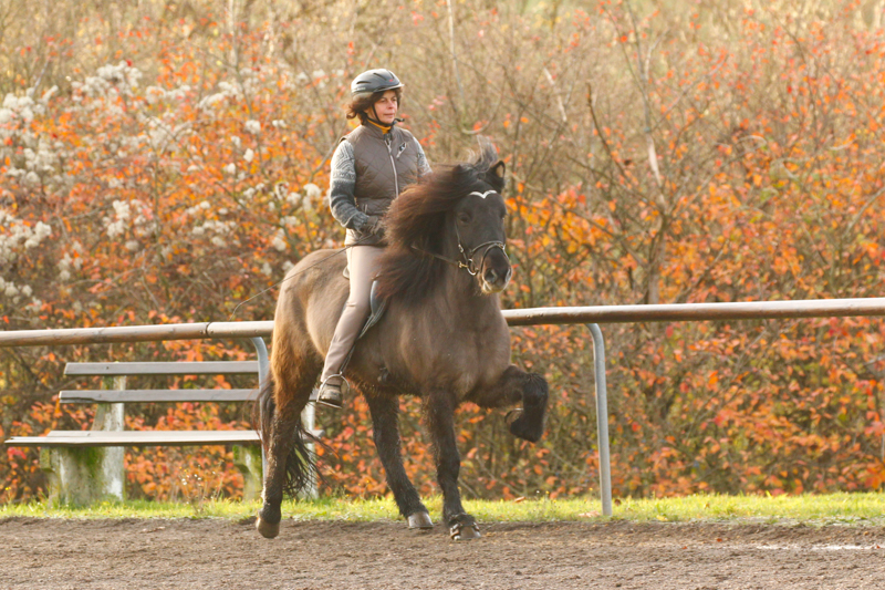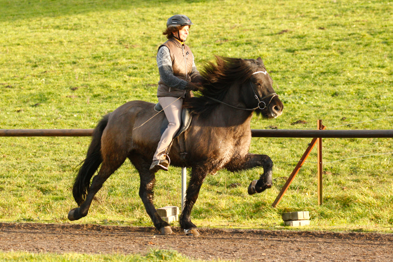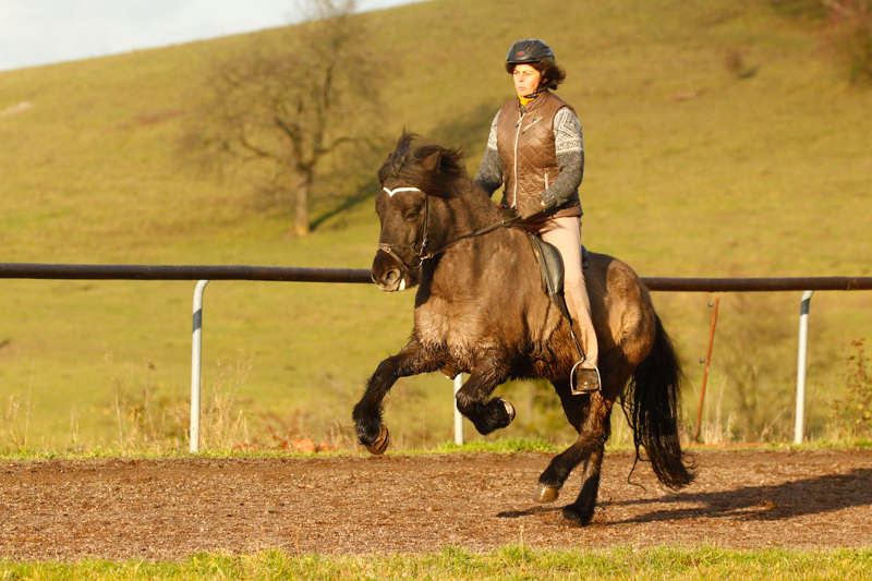 Ich habe einen schicken jungen Viergänger aus der Zucht von Familie Plattner, Röschbacherhof, im Training. Blídur ist ein Halbbruder meiner Stute Kolbrá vom Röschbacherhof. Sein Vater ist der berühmte Krummi frá Blesastödum. Blídur ist ein hübscher Rappe mit viel Ausstrahlung und schicker Gangveranlagung. Er hat schon jetzt sehr viel Takt und eine gute Tempovarianz im Tölt. Blidur ist fein und aufmerksam und sucht jetzt nach einem Reiter, der ihn weiter fördern kann und Spaß an einem interessanten, jungen Viergänger hat.