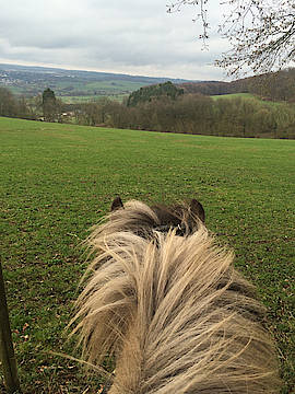 Mittlerweile sind die meisten meiner Ponys, die Vögel, die Hunde (mehr oder weniger) und wir auf dem Ponsheimer Hof angekommen. Zur Zeit sind wir noch mit dem Abbauen und Aufräumen auf Gut Waldeck beschäftigt, aber meine Zeit reicht bereits ab und zu für einen Erkundungsritt im Saarland. Die Landschaft ist wunderschön und wir leben uns gut hier ein :-)