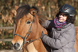 Ich bin meinem Team sehr dankbar, dass sie sich so prima um das leibliche und seelische Wohlergehen der Damen kümmern! Im Moment ist es vor allem Simona, die sich mit großer Liebe der Pflege der Ladys widmet. Hrafnfaxa und Kolskör kommen noch prima in der normalen Herde zurecht. Gusa und Ösp haben nicht mehr so gute Zähne und ernähren sich eigentlich überwiegend von eingeweichten Heucobs, Maisflocken und Öl - sind dabei aber kugelrund und glänzend.