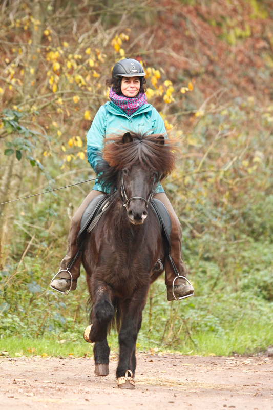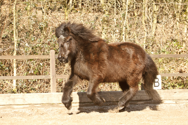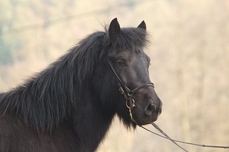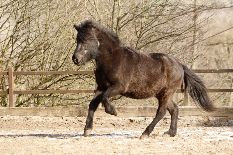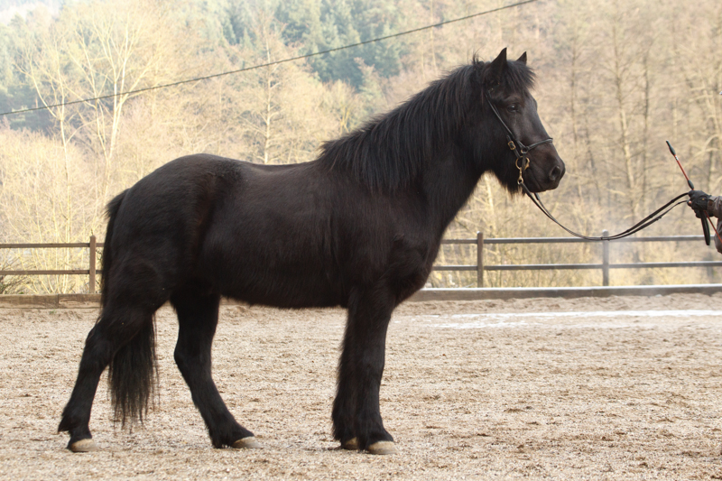 Grettir ist bei mir zur Ausbildung, seine Züchter bieten ihn aber auch zum Verkauf an. Grettir ist 2010 geboren und mittlerweile leicht angeritten. Er ist groß und kräftig und hat sehr viel taktklaren Naturtölt und geregelte Grundgangarten. Sein Temperament ist angenehm. Grettir ist grundsätzlich ein recht dominantes Pferd, er ist unsicher, wenn er den Menschen nicht als ranghöher anerkennt. Wenn er Vertrauen zum Menschen als "Chef" hat, dann ist er kooperativ und entspannt. Grettir war in seiner Herde immer der ranghöchste und für ihn ist es schlicht etwas Neues, dass er sich unterordnen muss. Er ist nicht problematisch, aber er ist unsicher, wenn er nicht weiss, was er tun soll.