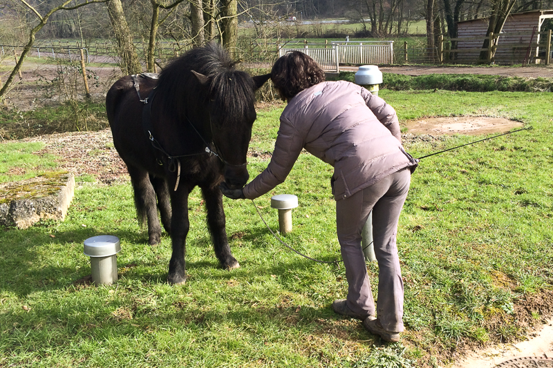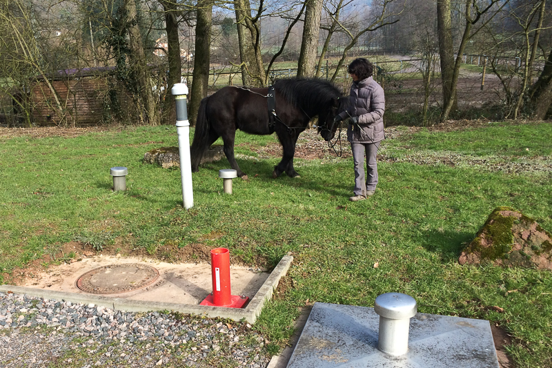 Bei der Arbeit mit Pferden muss man immer wieder einmal die ausgetretenen Pfade verlassen (in diesem Fall wortwörtlich) und sich abseits des Üblichen bewegen. Hier überprüfe ich Gehorsam und Vertrauen des jungen Wallachs Grettir. Hatte er anfangs noch schreckliche Angst vor all den Rohren und glitzernden "Scheußlichkeiten", so lief er mir dann nach Kurzem doch vertrauensvoll hinterher und wurde natürlich für seinen Mut herzlich belohnt...