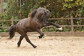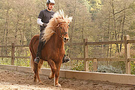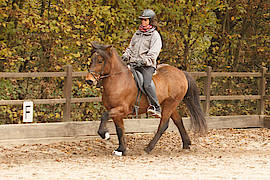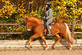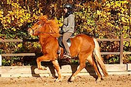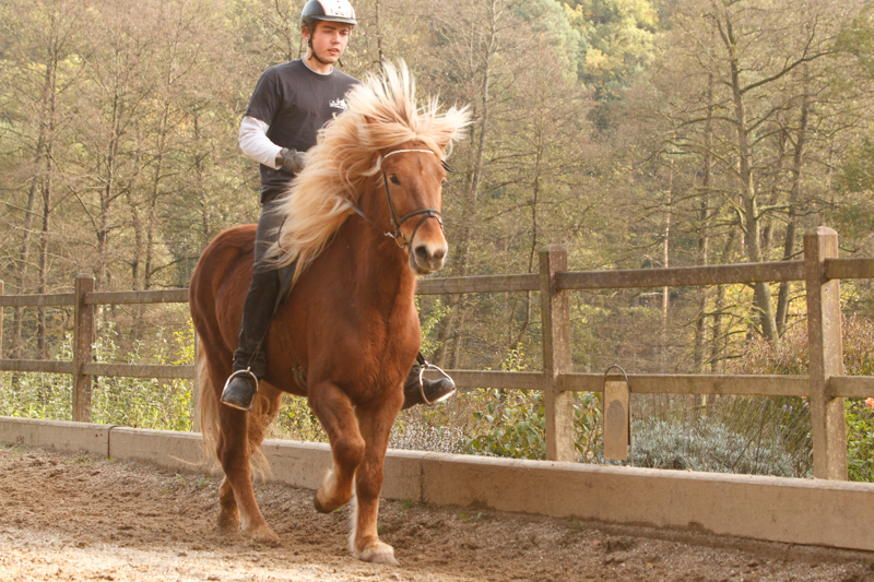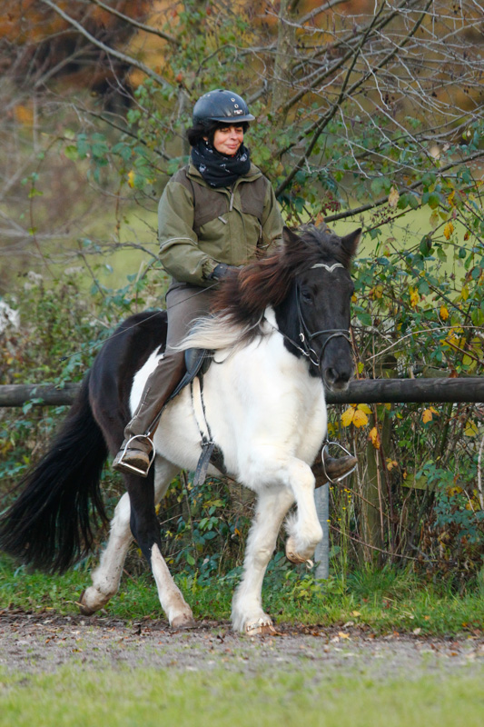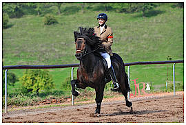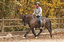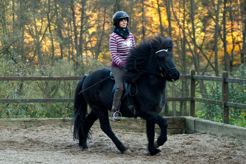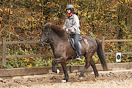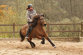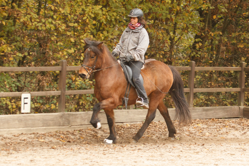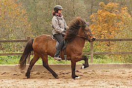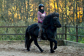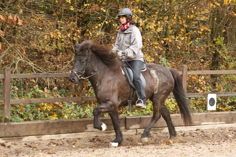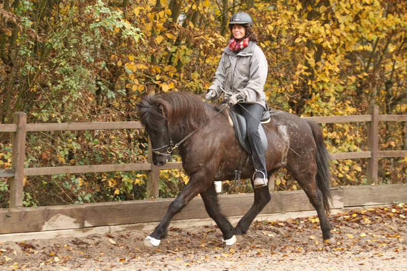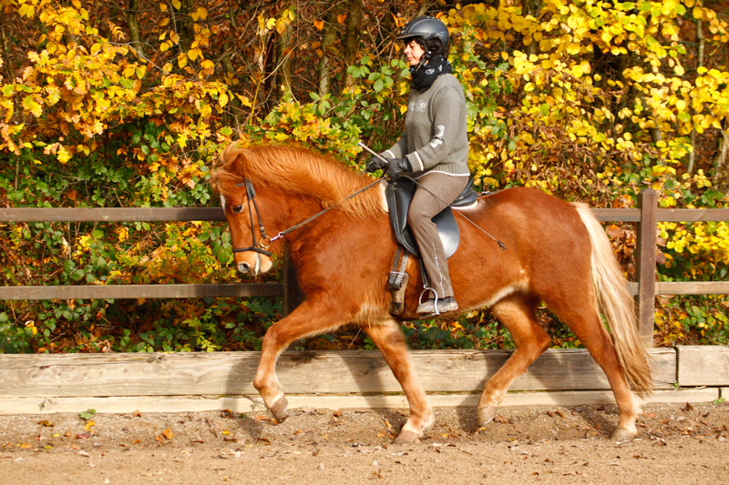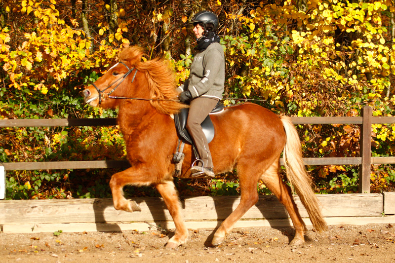 Unser siebenjähriger Andvari macht sich richtig gut; ich habe ihn nun seit mehreren Monaten in Ausbildung und mittlerweile wird er ein richtiges Dressurtalent! Dabei ist unser Ausbildungsschwerpunkt eigentlich noch die Förderung im Tölt... Der Tölt muss noch etwas schneller werden und im Tölt arbeite ich noch daran, dass er sich mehr fallen lässt. In den Grundgangarten ist er aber schon sehr ausdrucksvoll und superleicht an den Hilfen. Dabei ist er sensibel und schnell in den Reaktionen. Ein ganz schickes Pferd für einen Reiter, der ein feines Viergangpferd mit gutem Dressurpotential sucht! Mehr über Andvari
