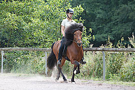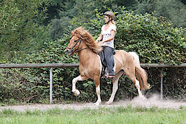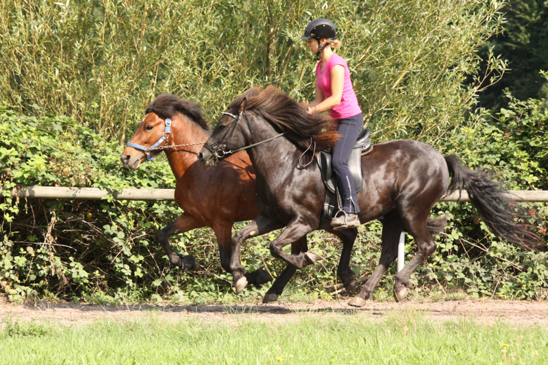 Unsere beiden Verkaufspferdestuten Glydrá und Freyja trainieren gerade ihre Fähigkeiten in der fünften Gangart des Islandpferdes: dem Rennpass...