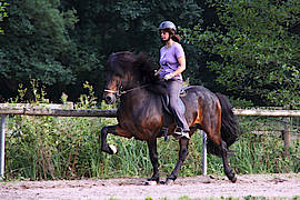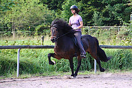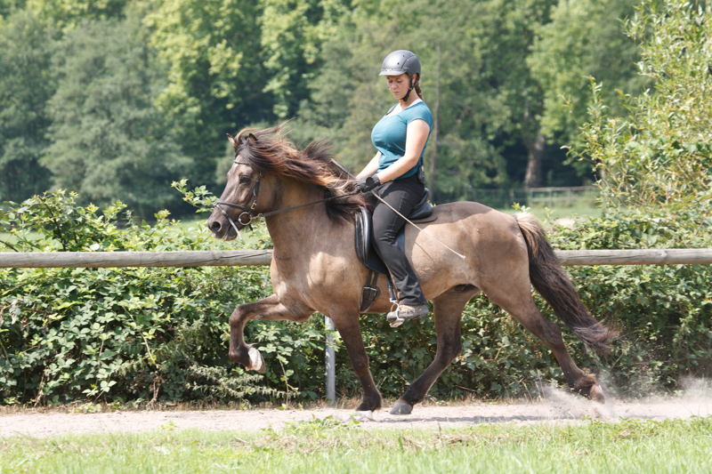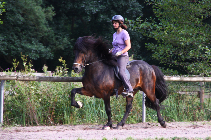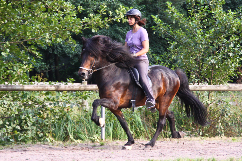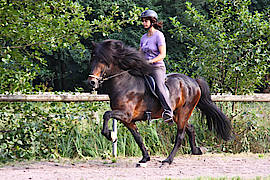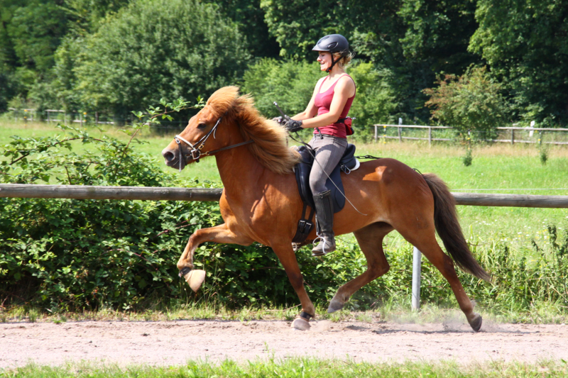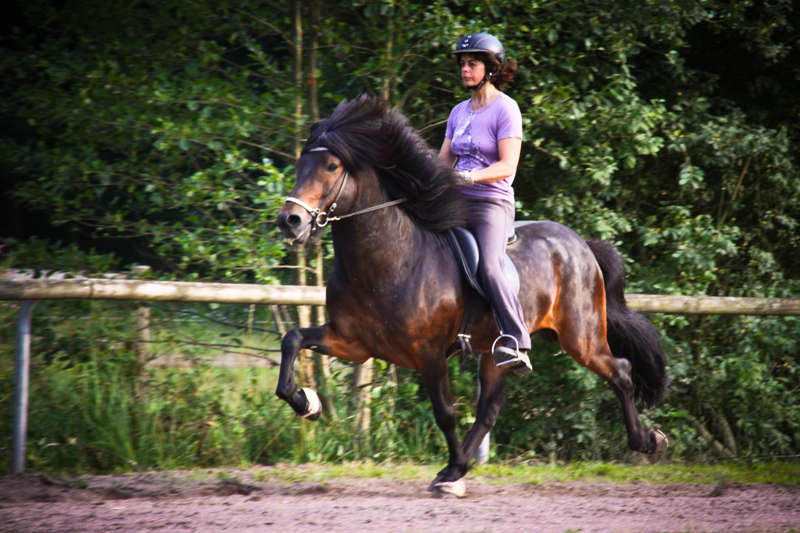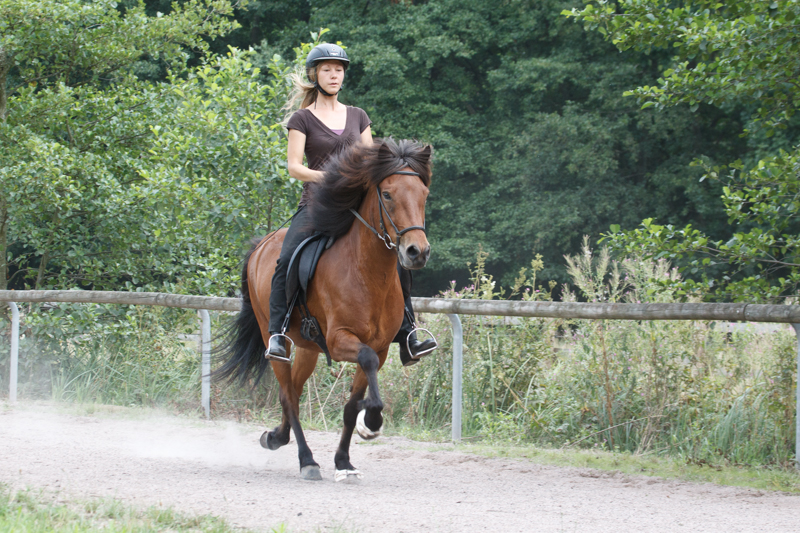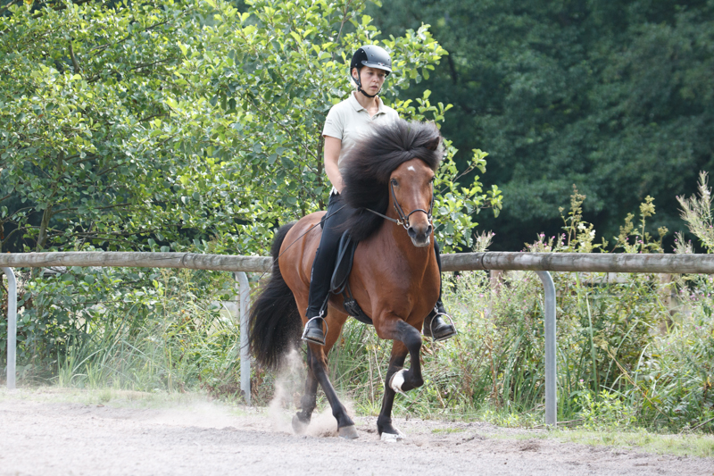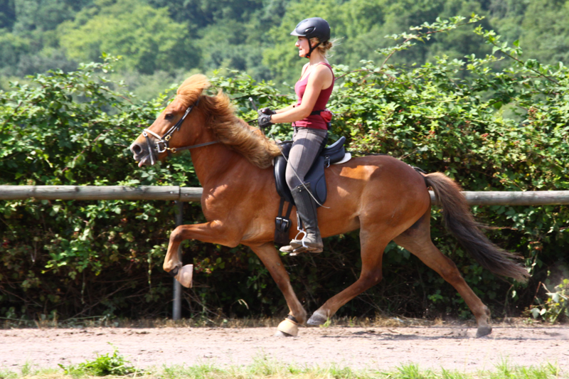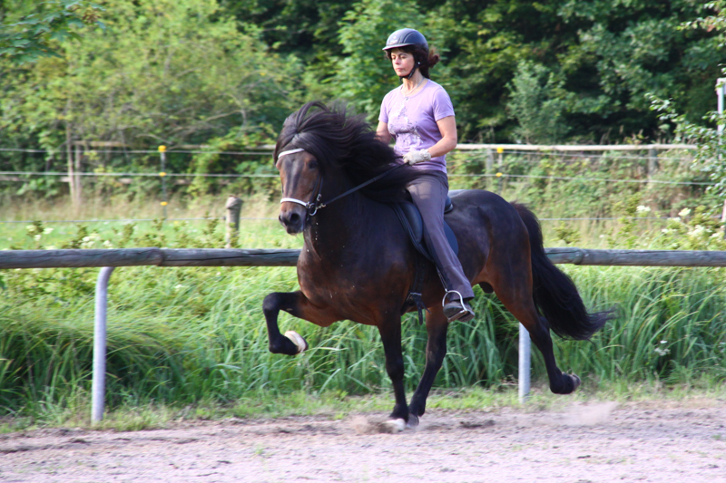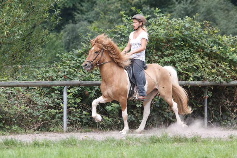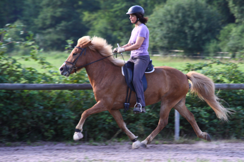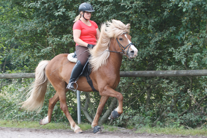 Freyja startete gerade mit Paula Bartschke beim Goldenen Reitabzeichen und verhalf ihr zu einer 1,5 als Note für das Passreiten; Glydrá absolviert gerade mit mir ihre ersten Rennpassläufe.