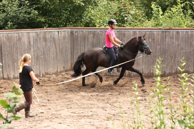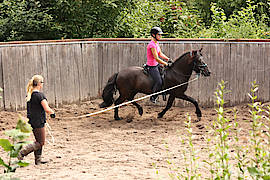 Unverhofft habe ich Unterstützung von Annki Manherz und Sophia Kruse bekommen, die für mich meinen vierjährigen Krabat anreiten. Annki hat auf dem Wiesenhof ihre Jungpferdebereiterprüfung gemacht und mir hat damals sehr gut gefallen, wie sie mit ihren Pferden umgeht und wie fein sie ausgebildet waren. So habe ich ihr und ihrer Wiesenhof-Kollegin Sophia meinen Nachwuchswallach Krabat anvertraut und die beiden sehen, wie weit sie während dem Trainer C Kurs mit ihm kommen. Danke an Euch beide!